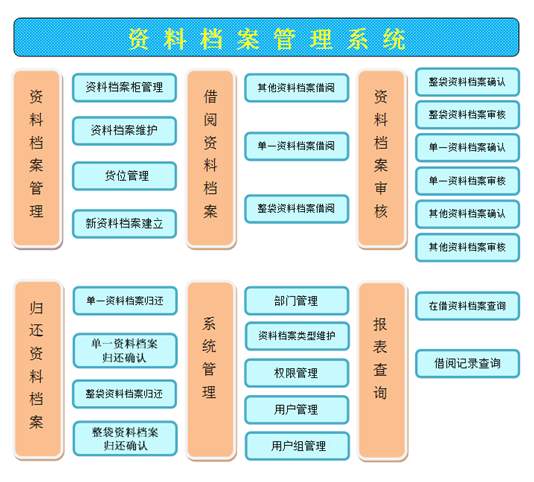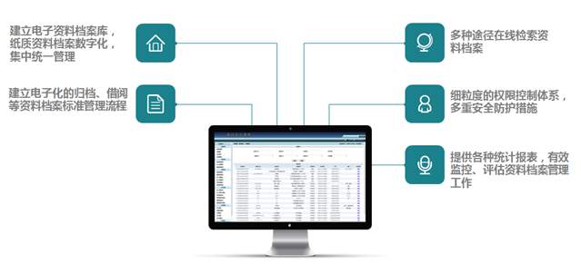 資料檔案管理系統通過建立統一的標準,規范整個資料檔案管理,包括規范各業務系統的文件管理;構建完整的資料檔案資源信息共享服務平臺,支持資料檔案管理全過程的信息化處理,包括:采集、移交接收、歸檔、存儲管理、借閱利用和編研發布等,同時逐步將業務管理模式轉換為服務化管理模式,以服務模型為業務管理基礎,業務流和數據流建立在以服務為模型的系統平臺之上。資料檔案管理系統,為企事業單位的資料檔案現代化管理,提供完整的解決方案,資料檔案管理系統可以自成系統,為用戶提供完整的資料檔案管理和網絡查詢功能,形成更加完善的現代化信息管理網絡。