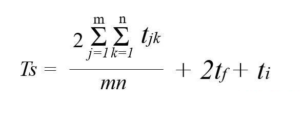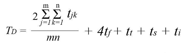 平均單一作業循環時間:堆垛機從某一出入庫站開始向所有貨格進行入庫作業循環(或出庫作業循環)的平均時間。當貨架為m列,n層時,作業時間為: