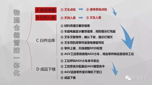 “倉儲物流管控一體化系統”是一項智能化工程項目,實施后符合國家新近發布的“中國制造2025”的整體思路。該系統采用信息集成技術,結合先進的RFID、指示燈揀選技術,滿足生產作業順序計劃,實現AGV系統、升降機系統、工位呼叫系統等多個物流輸送設備的智能化協同調配,使整個焊接生產、倉儲、物流管控自動化。將網絡信息技術與傳統制造業相互滲透、深度融合,將現有物流技術設施資源效率發揮到最大。